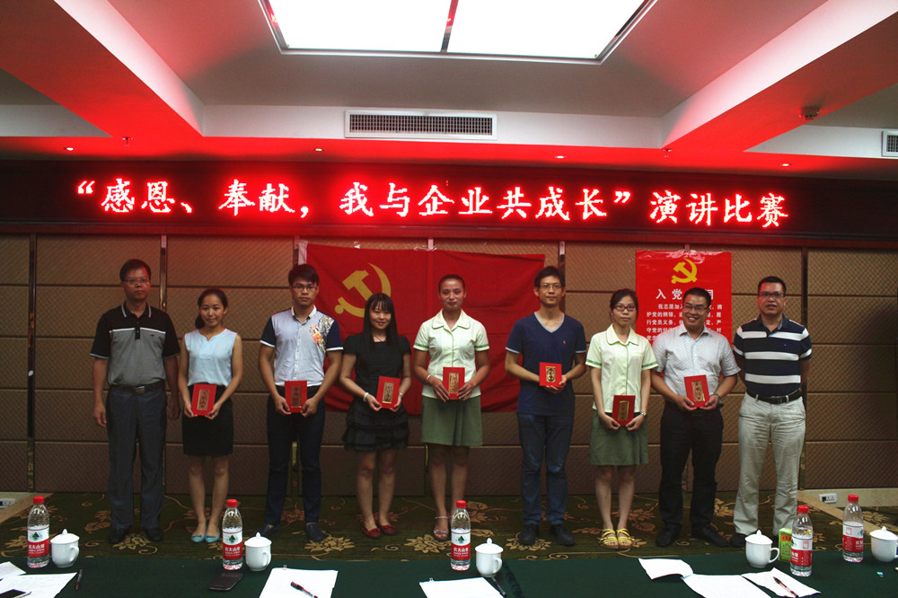 会上,举行了新党员入党宣誓、老党员重温入党誓词的仪式。公司党委副书记申文捷宣读了表彰决定,表彰了南宁柳药支部、科室支部两个先进党支部以及一批先进党员。会后以支部为单位开展了以“感恩、奉献,我与企业共成长”为主题的演讲比赛。