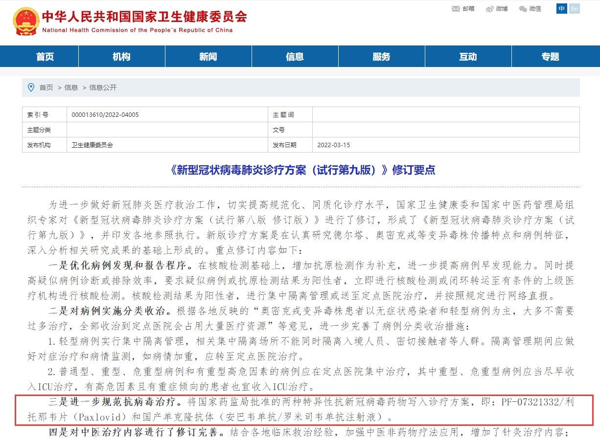 自疫情发生以来,公司对疫情相关治疗药品、疫苗、检测试剂等产品的生产研发及上市高度关注,确保能第一时间引进相关产品。2月11日,国家药监局附条件批准辉瑞公司新冠病毒治疗药物Paxlovid进口注册,公司关注到相关信息后立即与辉瑞公司了解上市进程,为新药采购做好准备。同时公司作为广西疫情防控物资收储供应单位,也及时向自治区新冠疫情防控指挥部汇报,在自治区卫健委、区工信厅、区医保局等部门支持下,采取有效措施加快引进该药品。3月15日,Paxlovid特异性抗新冠病毒药物被写入国家卫生健康委发布的《新型冠状病毒肺炎诊疗方案(试行第九版)》诊疗方案。公司在政府相关部门的协调帮助下,与奈玛特韦片/利托那韦片(Paxlovid)在中国大陆市场的商业运营商—中国医药健康产业股份有限公司进行了多方沟通,达成合作协议。