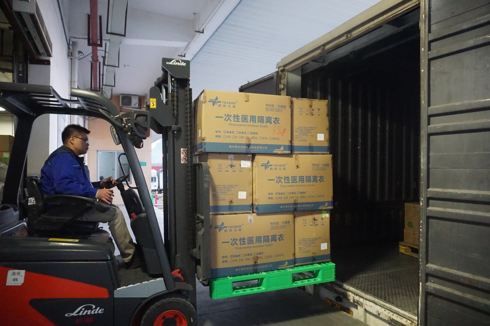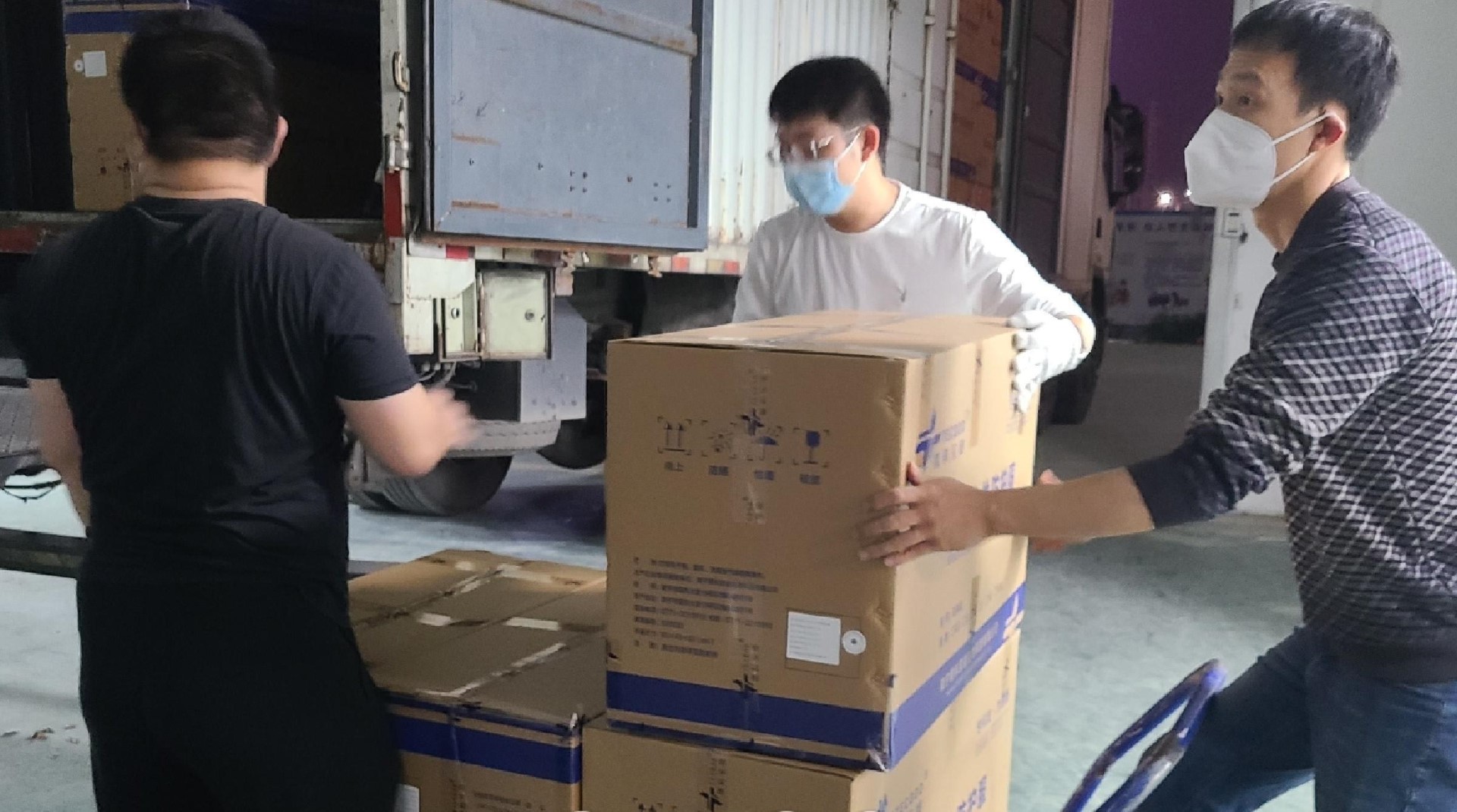 公司10车共3632件防疫物资就陆续到达防城港,较原定时间提前4个小时。