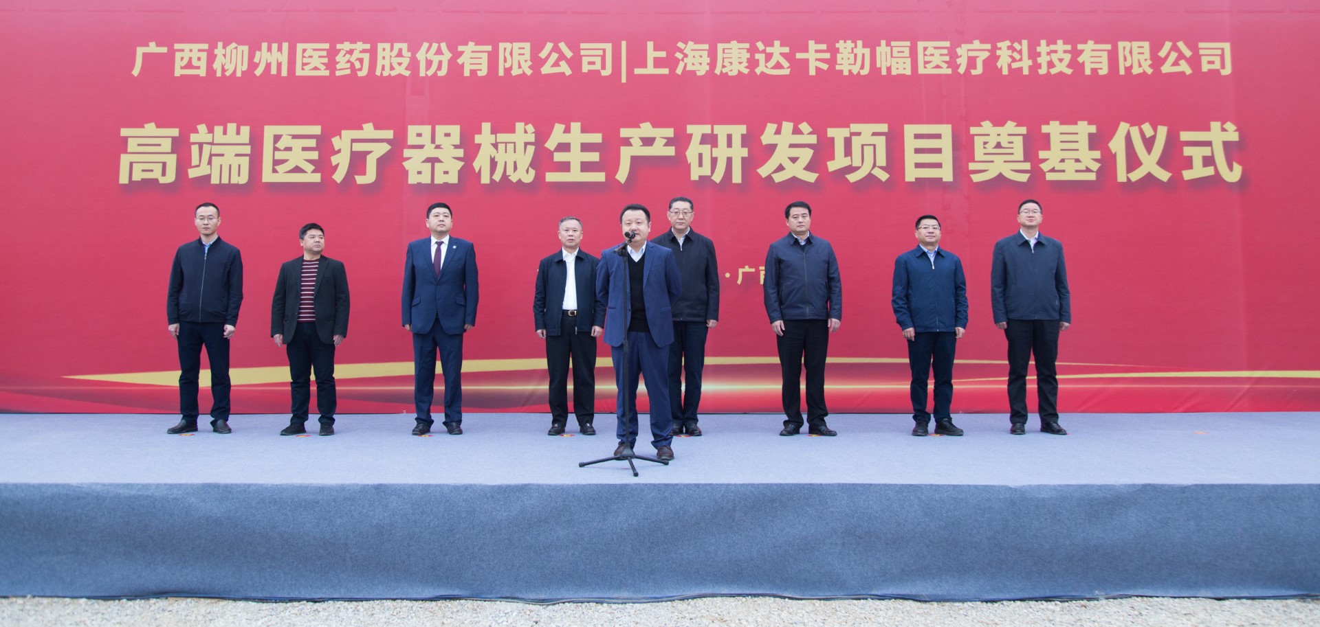 12月15日上午,广西柳州医药股份有限公司-上海康达卡勒幅医疗科技有限公司高端医疗器械生产研发项目在洛维工业集中区奠基开工。柳州市委副书记、市长张壮,副市长汤振国,秘书长刘伯臣,上海康达卡勒幅董事长林海,公司董事长朱朝阳,广西康达卡勒幅总经理祁俊等出席活动。